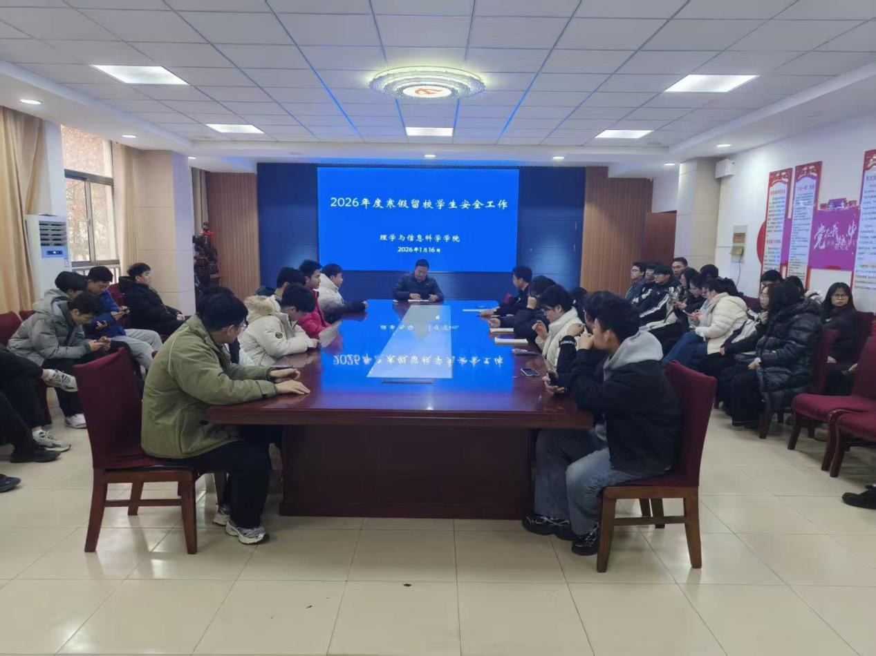 会上,谷元兴结合学校《关于做好2026年寒假期间学生安全教育管理工作》的通知,围绕留校期间的人身财产安全、实验室安全、网络安全以及防范电信诈骗等重点领域进行了详细讲解与提醒。他强调,全体留校同学务必牢固树立“安全第一”的意识,严格遵守学校各项规章制度,保持通讯畅通,与家人、学院保持定期联系,合理安排假期学习与生活,提高自我管理与应急处置能力。