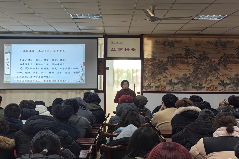 柳清泉以其深厚的学术积淀,从《诗经》《易经》等经典著作入手,系统阐释了中国传统文化中丰富的颐养思想。她重点解读了养性养志、养体养气等颐养之道的深刻内涵,引导学生从优秀传统文化中汲取智慧,提升个人修养。讲座现场气氛热烈,柳清泉通过生动的案例和深入浅出的讲解,使在场师生对传统文化中的生命智慧有了更深刻的理解。